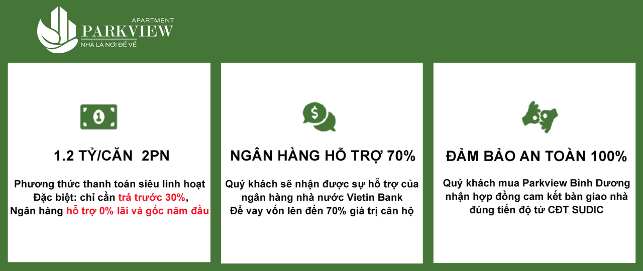 CĂN HỘ PARKVIEW APARTMENT THUẬN AN BÌNH DƯƠNG - GIÁ GỐC CĐT