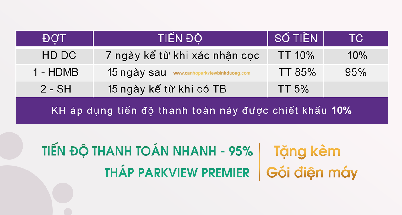 Tiến độ thanh toán nhanh 95% | Parkview Premier